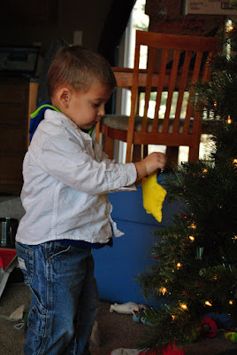 This weekend we finally picked up our Christmas tree. Usually we get one right after Thanksgiving, so waiting this long was weird for me. Last year we set up our tree while the boys slept and then video taped them coming out to see it for the first time... Remember this?